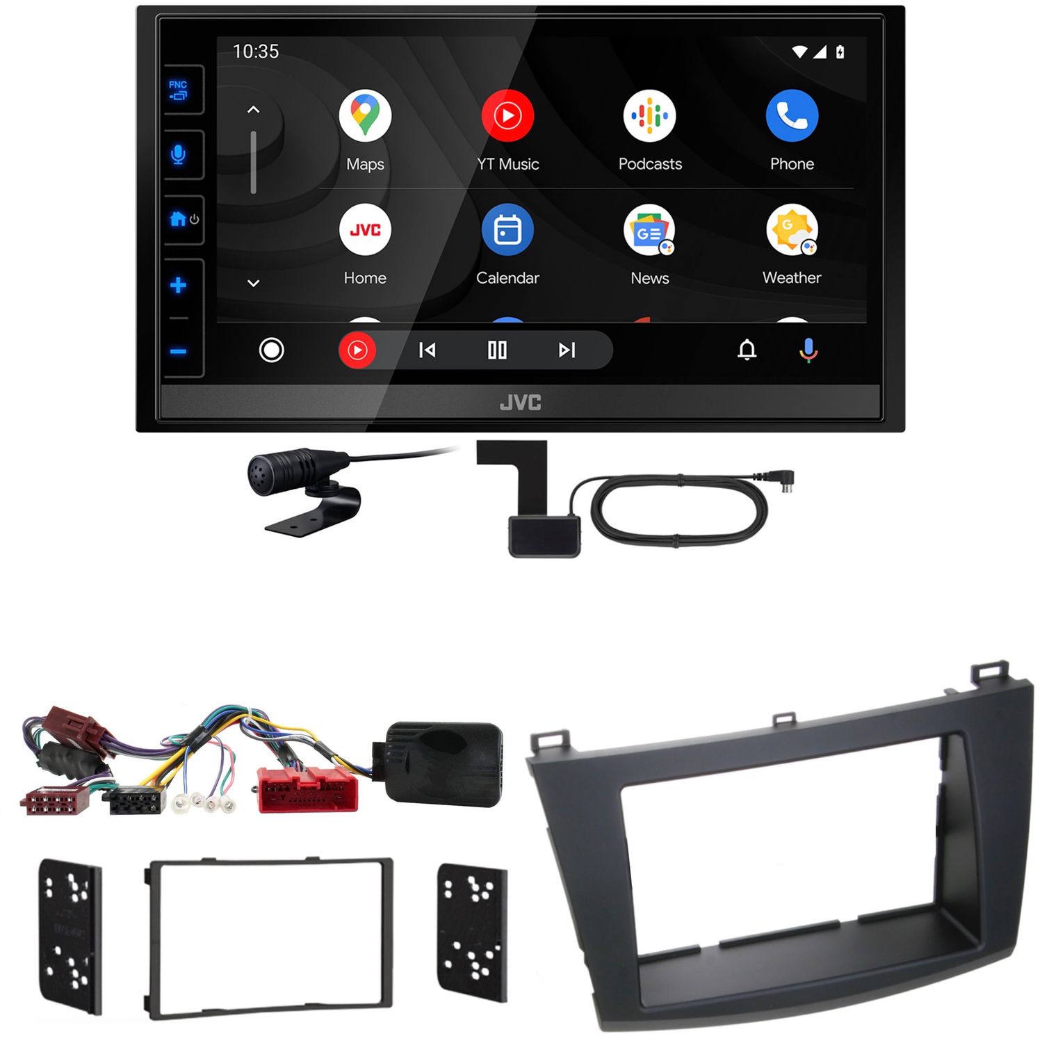 Komplett Einbauset für Mazda 3 BL 2009 - 2013 mit BOSE Soundsystem, bestehend aus: JVC KW-M785DBW inkl. DAB Scheibenklebeantenne, Radioblende Lenkradfernbedienungsadapter inkl. ISO Adapter und Adapter für das BOSE Soundsystem.